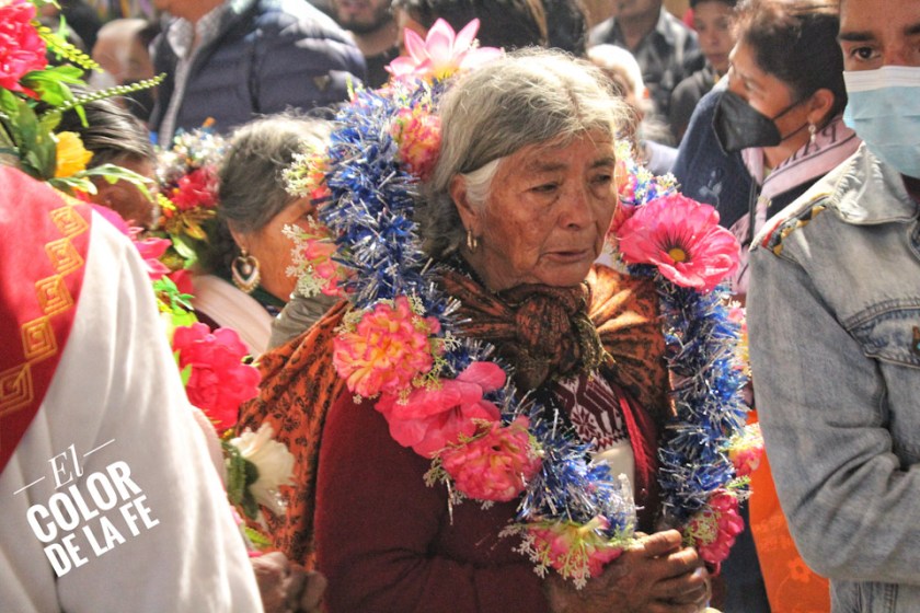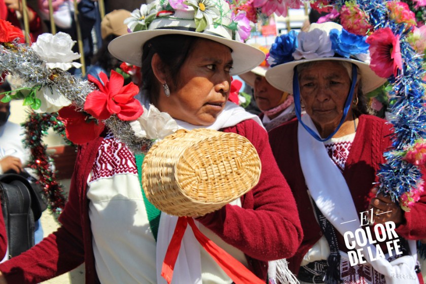 Las mujeres participan en la decoración del templo colocando manteles y pendones bordados en punto de cruz con detalles mazahuas y religiosos, que son característicos de la etnia mazahua, algunos con mensajes para los peregrinos o con la imagen de Nuestro Padre Jesús.