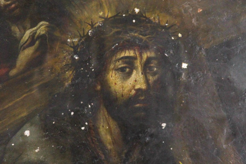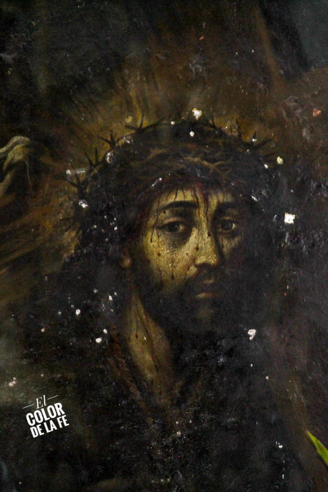 Algunas versiones refieren que fue un hombre oriental el que pintó la imagen del Señor de los Trabajos con gran maestría, representando a Jesús camino del Calvario, ayudado por Simón de Cirene y acompañado por María, su Madre, San Juan, María Magdalena y dos verdugos.