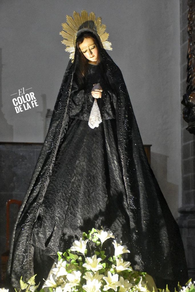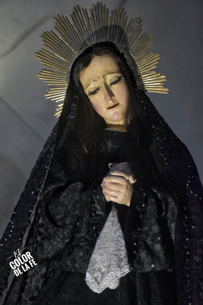 Después de una larga plática en la que no lograban ponerse de acuerdo, invitaron al indígena a entrar a su casa para convencerlo que ahí no habitaba ninguna dama con la indumentaria que él describía; pero apenas hubo atravesado la sala, el hombre miró emocionado la imagen de la Virgen enlutada, que sin lugar a dudas, era la señora elegante que había visto durante días por la polvorosa calzada de San Cristóbal y a quien seguía sin lograr darle alcance, y lo afirmaba de tal manera, que era creíble lo que decía.