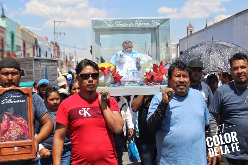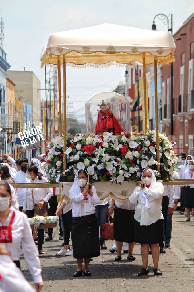 Los festejos al Santo Niño Doctor concluyen con una procesión con la bendita imagen por diferentes calles de Tepeaca, acompañado por las diferentes cofradías que promueven la devoción, entre ellas la Cofradía de los Médicos, integrada por personal de salud.