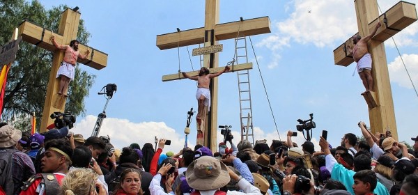 Fotografías: Ángel González Texto: Diego Rodarte Con la representación del Vía Crucis por los alrededores de la plancha del Zócalo de la Ciudad de México, la